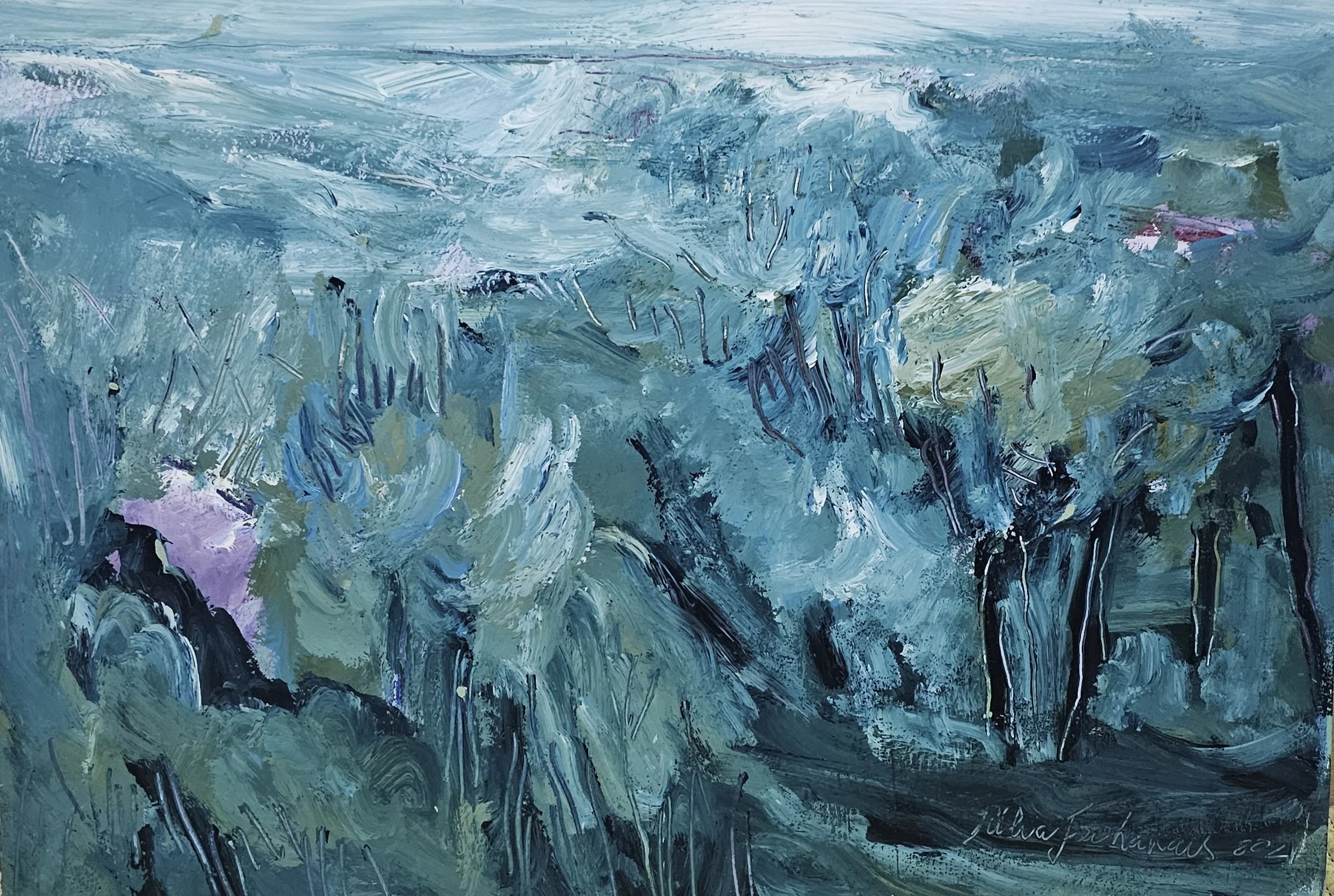 São os movimentos soltos do pincel e da espátula na sublimação da compreensão do observado, que foi interiorizado e depois libertado na expressão pictórica com caráter antropomórfico.